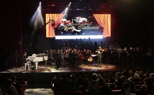Cerca de 500 pessoas encheram o Teatro Elias Angeloni na noite da última quinta-feira (6/11) para a sétima edição da Noite Cultural da Abadeus. O evento gratuito é um espetáculo realizado pelos alunos da Escola de Artes do Centro de Inovação Social, com apresentações de coral, orquestra e performances solo preparadas ao longo de todo o ano.