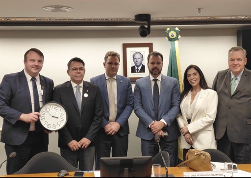 Com um relógio de parede nas mãos, o vereador Aldinei Potelecki (Republicanos) protagonizou um dos momentos mais marcantes da audiência pública realizada nesta terça-feira (21), em Brasília, que discutiu soluções para o histórico gargalo do Morro dos Cavalos, na BR-101, em Palhoça. Representando o Legislativo de Criciúma e na condição de relator da comissão especial da Câmara dedicada à construção do túnel, Potelecki foi o primeiro vereador do Sul catarinense a se manifestar na tribuna.