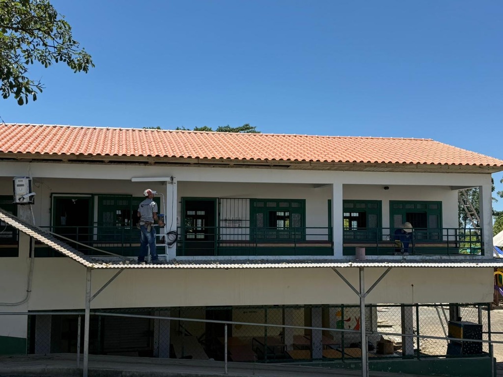 Entre as melhorias em andamento está a reforma e substituição do telhado da Escola de Educação Básica Eulália Oliveira Bem, contemplando uma área total de 222,40 m². O investimento é de R$ 115.790,40, com execução da empresa AMOVEX Construções Ltda, garantindo maior segurança estrutural e proteção contra infiltrações.