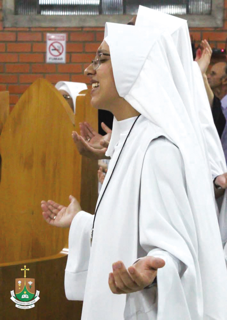 Ela conta que neste sábado (20), durante a celebração da missa no Santuário, as cinco meninas, Isabela, Ester, Marina, Gleice e Franciele, já devem entrar vestindo o hábito preto para professar os primeiros votos de pobreza, castidade, obediência e escravidão a Nossa Senhora, se comprometendo com o Carisma e a Santa Igreja.