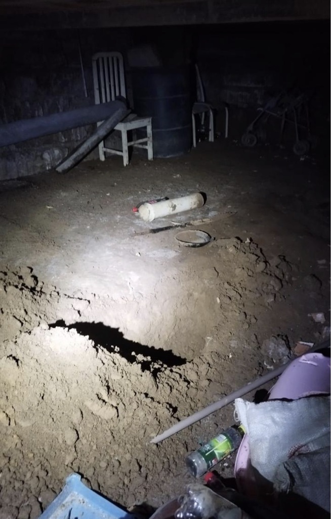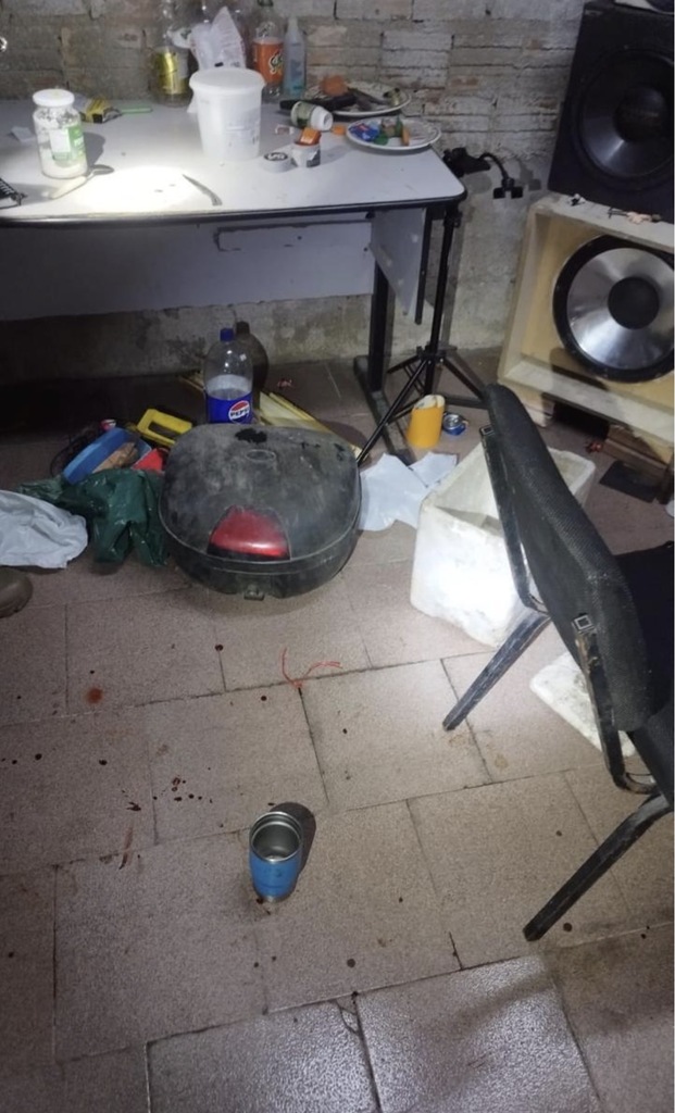 No porão da residência, foi localizado um buraco parcialmente iniciado, possivelmente destinado a ocultação dos corpos.